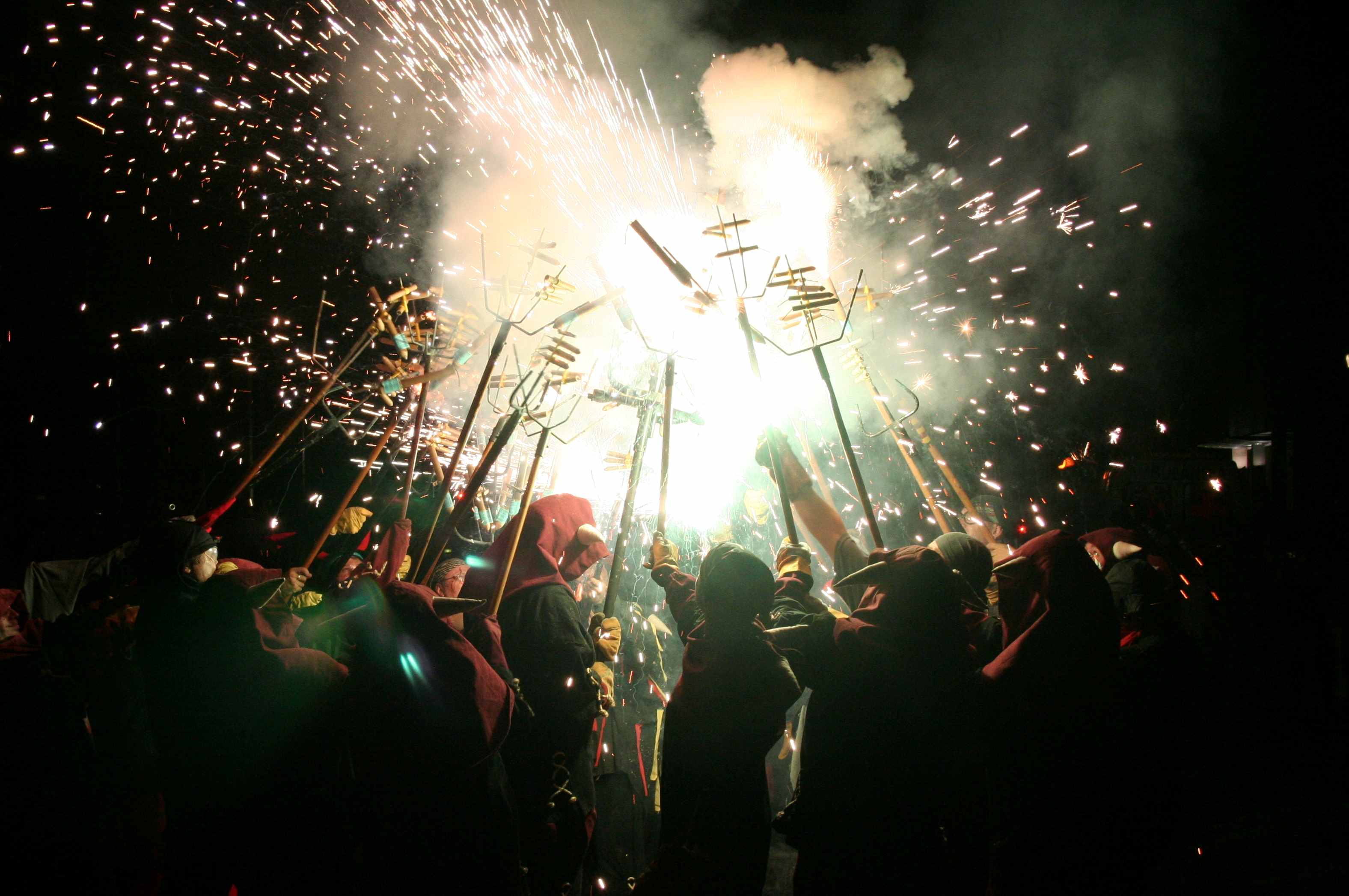 Os diables são os protagonistas humanos do Correfoc, tradição intimamente associada às Fiestas de La Mercè, em Barcelona, e vão marcar presença no Imaginarius. Representam figuras demoníacas, satíricas e provocatórias, vestidas com trajes ignífugos, geralmente decorados com símbolos infernais, chamas ou motivos tradicionais. Para além do impacto do fogo, carregam uma forte dimensão simbólica e política, historicamente associada à crítica social, à inversão da ordem e à liberdade de expressão dentro do espaço festivo.