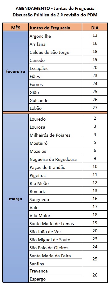 A Câmara Municipal de Santa Maria da Feira vai promover duas sessões públicas de apresentação do Plano e das suas principais opções, que terão lugar:
