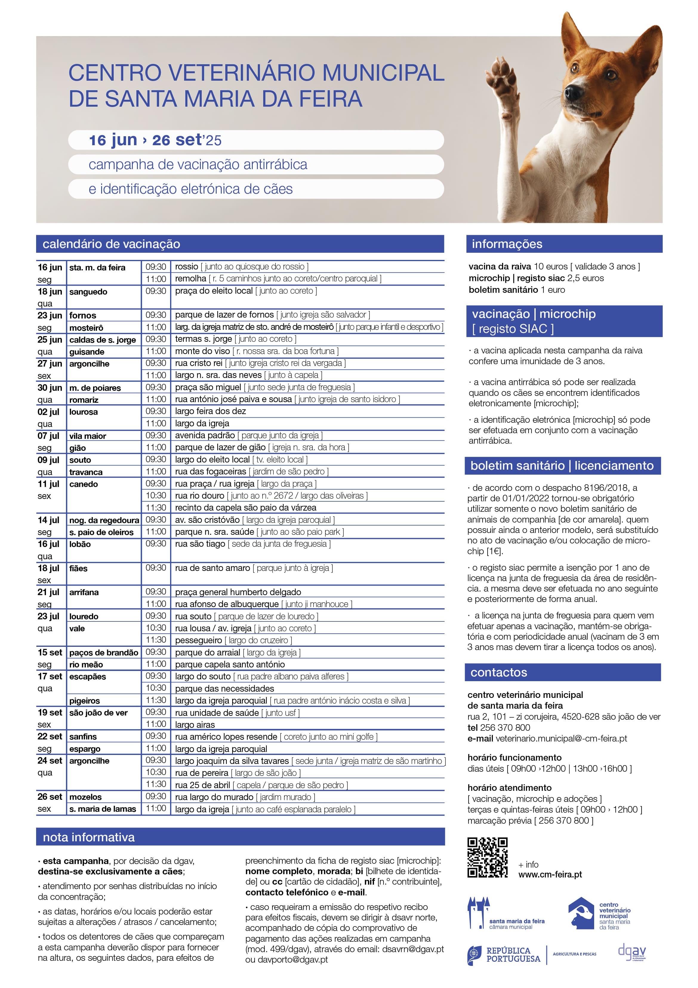 - Esta intervenção só pode ser efetuada quando em conjunto com a vacinação antirrábica no âmbito da CVAR 2025.