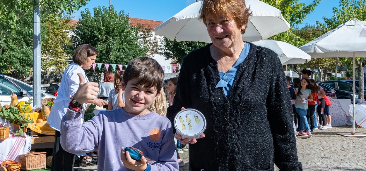 Os alunos são todos eles clientes fiéis, mas muitos outros não falham uma edição. É o caso da avó Cecília que aguardava a saída do neto para, em conjunto, fazerem as suas compras. “Ele escolhe e eu pago. Mas dou-lhe o dinheirinho porque ele é que gosta de pagar”. Noémia Moreira é moradora em Fornos e é uma cliente fiel desta Feira de Outono. Primeiro, porque o seu neto Pedro ali estudava e depois porque gosta de comprar os produtos da terra. “Ainda me aproximei da banca da marmelada para ver a do meu Pedro, mas, este ano, não há marmelada do Pedro”, confessou com nostalgia e explica que o neto já passou para o 2º ciclo.