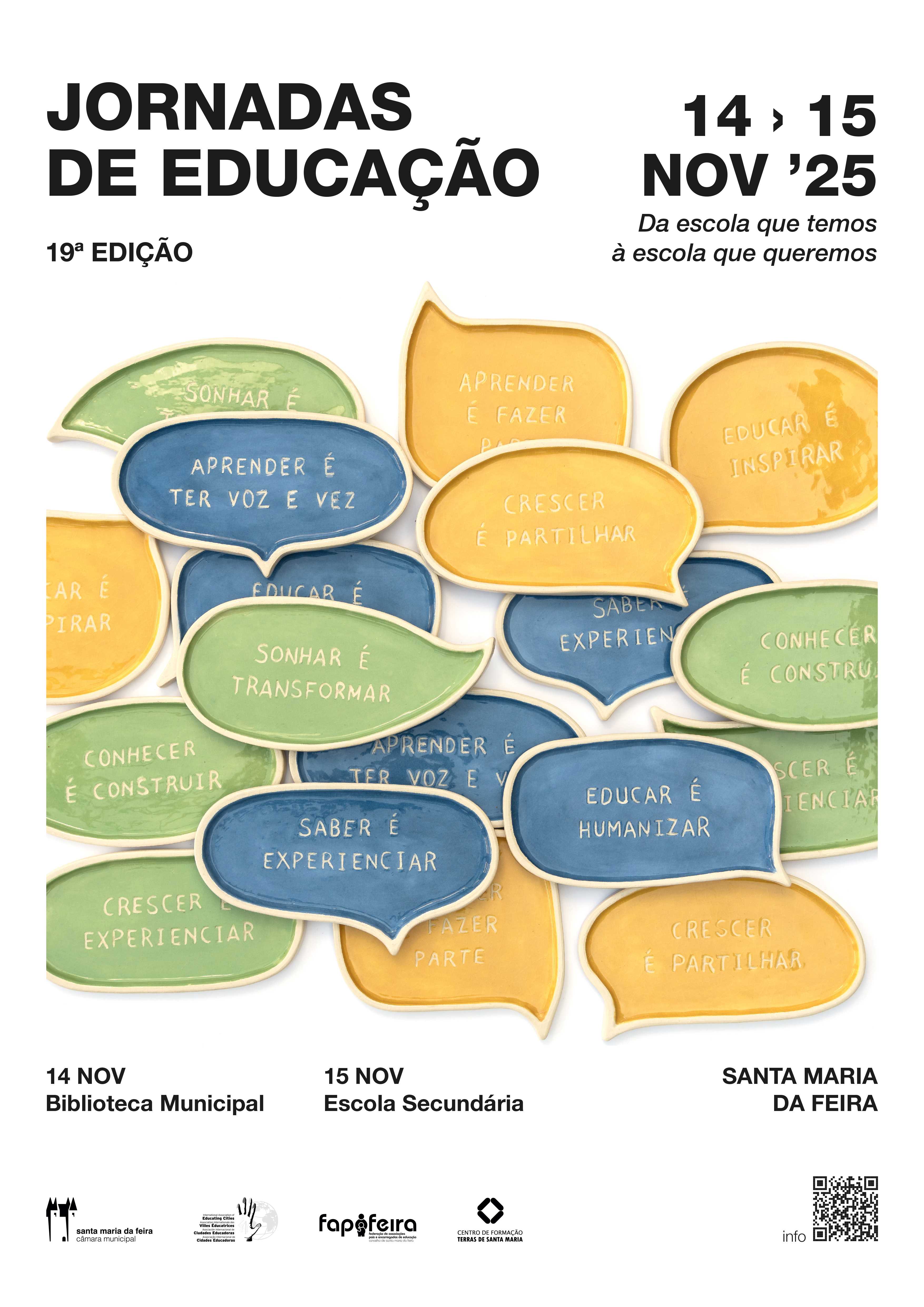 As Jornadas de Educação estão de regresso para a sua 19.ª edição! Criadas em 2002, estas Jornadas tornaram-se uma referência na região, reunindo anualmente professores, educadores, alunos, famílias, técnicos e decisores para refletir sobre os grandes desafios da escola e da educação.